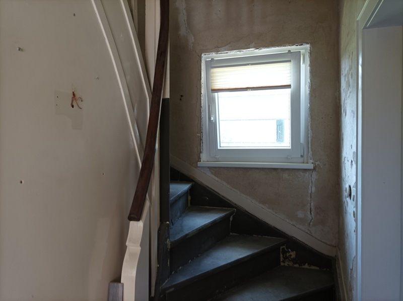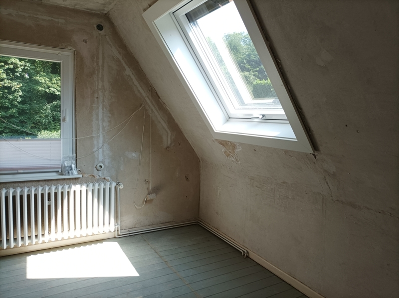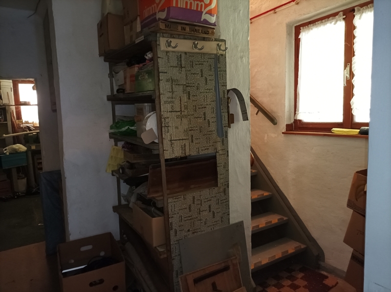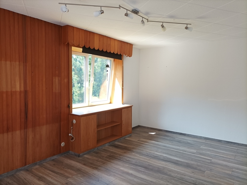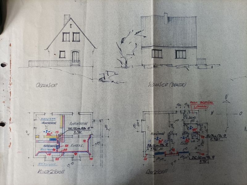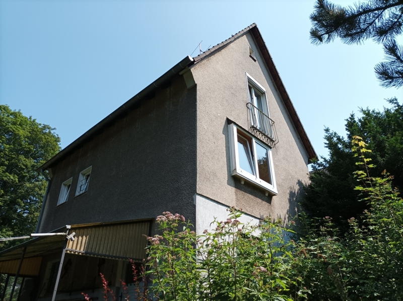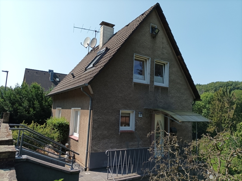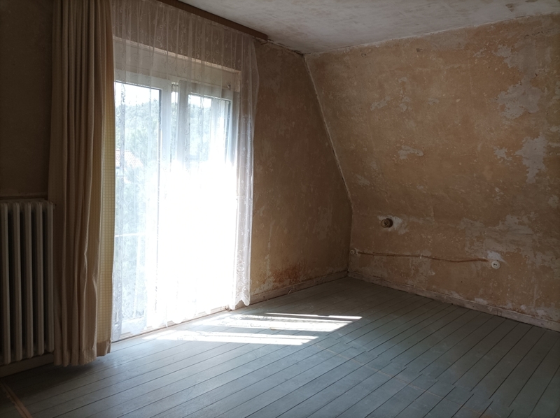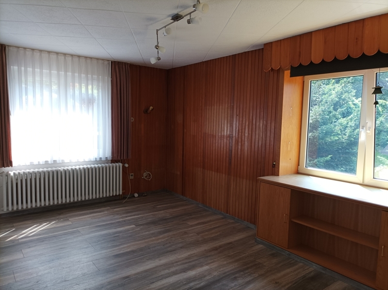 Die vom Eigentümer abgebrochene Renovierung (persönl.Gründe) läßt eine solide und robuste Bausubstanz erkennen. Das Haus ist kein Raumwunder, aber für eine kleine Familie durchaus ausreichend. Für die etwas größere Familie lassen sich die hohen und mit Fenstern ausgestatteten Kellerräume evtl teilweise zu Wohnräumen umgestalten. Bei weiterem Wohnbedarf können im rückwärtigen Bereich noch einige Meter Baureserve genutzt werden. In 1997 wurden die Fenster in den Wohnräumen erneuert. Danach dann die Türen zum Hauseingang und Kellerausgang.