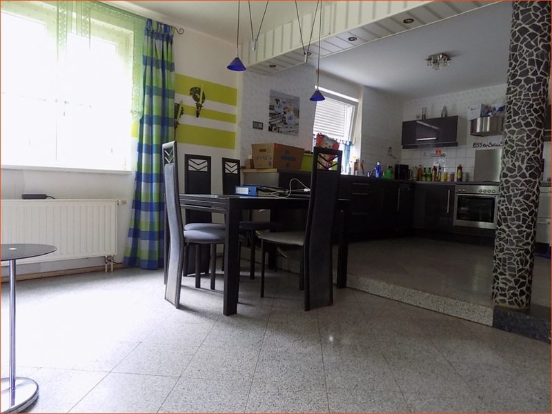 Ausstattung:Das Gebäude wurde 2004 in Massivbauweise errichtet. Es wird über eine moderne Gas Zentralheizung beheizt und ist teilweise unterkellert. Die beiden Wohnungen verfügen über die etwa gleiche Wohnfläche. Lediglich die OG Wohnung ist ein wenig anders geschnitten. Wer viel Wohnfläche für sich und seine Familie benötigt ist hier vollkommen richtig. Die Grundrisse im OG lassen sich (fast) beliebig verändern. Der im EG befindliche Wohnbereich ist sehr großzügig geschnitten. Das Wohnzimmer mit einem Essbereich ist nur durch eine dekorative Stufe von der offenen Küche getrennt. Die Wohnung im OG wurde so gestaltet, dass hier ein zusätzliches Zimmer geschaffen werden kann. Vorgesehen ist hier entweder ein Balkon oder eine Außentreppe in den abgetrennten Gartenteil. Sie haben hier die Möglichkeit mit zwei Generationen oder mit zwei kleinen Familien unter einem Dach zu leben. Oder Sie nutzen alles alleine für sich.